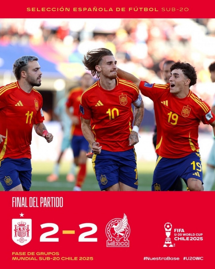 此役过后,西班牙1平1负积1分,排名世青赛C组最后一位,墨西哥则是2战皆平积2分。