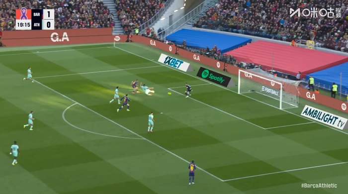 错失良机!费尔明单刀机会射门被扑,奥尔莫补射偏出